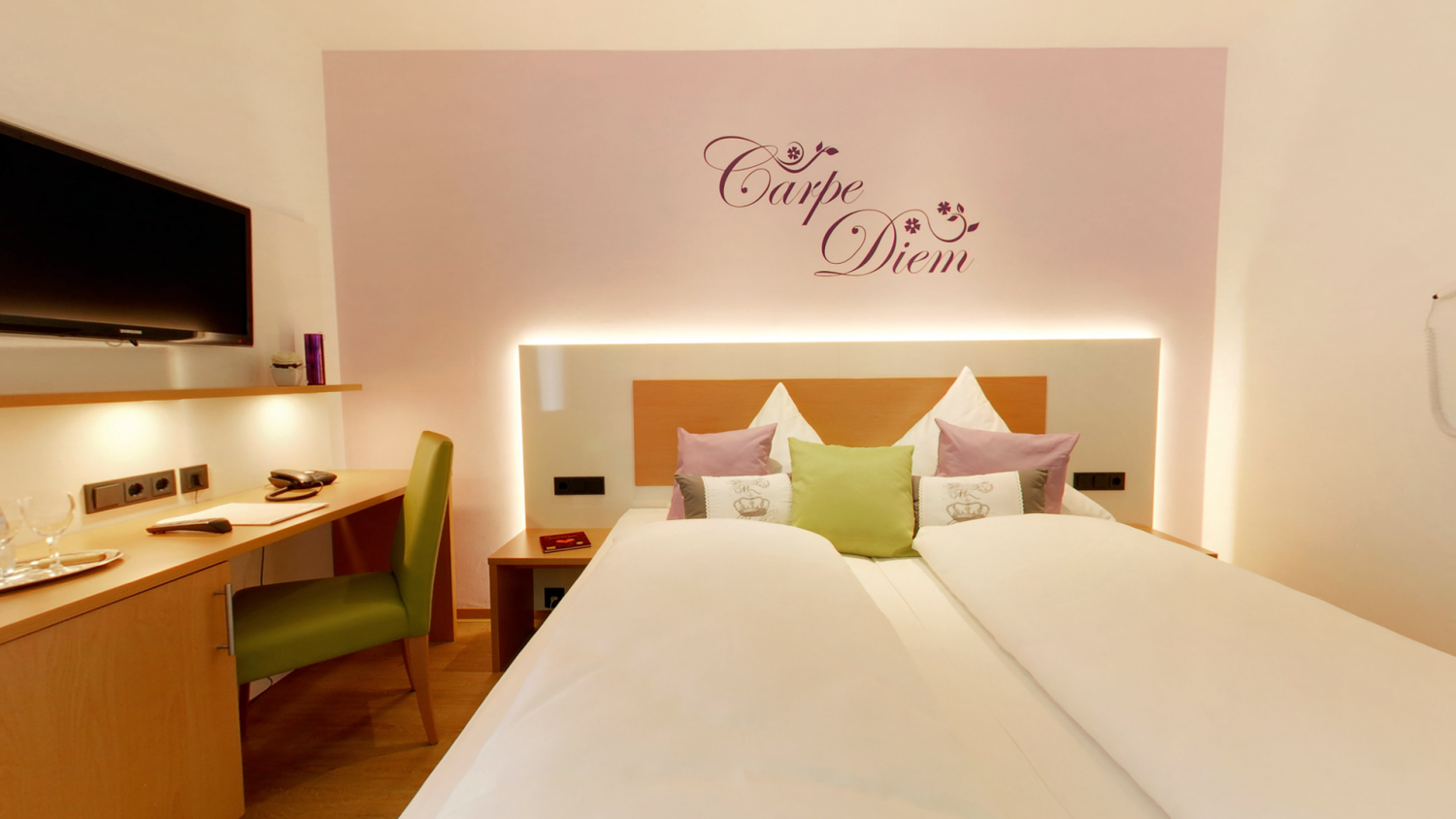 In unserem zentral gelegenen 3-Sterne-Komfort-Superior-Hotel erwarten Sie modern eingerichtete Zimmer mit Dusche, WC, Haartrockner, kostenlose Pflegeprodukte, Telefon, WLAN und 32" LED Flachbild-TV.