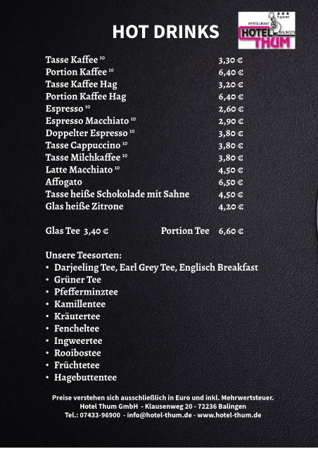 Glas Tee  3,40 €                           Portion Tee  6,60 €